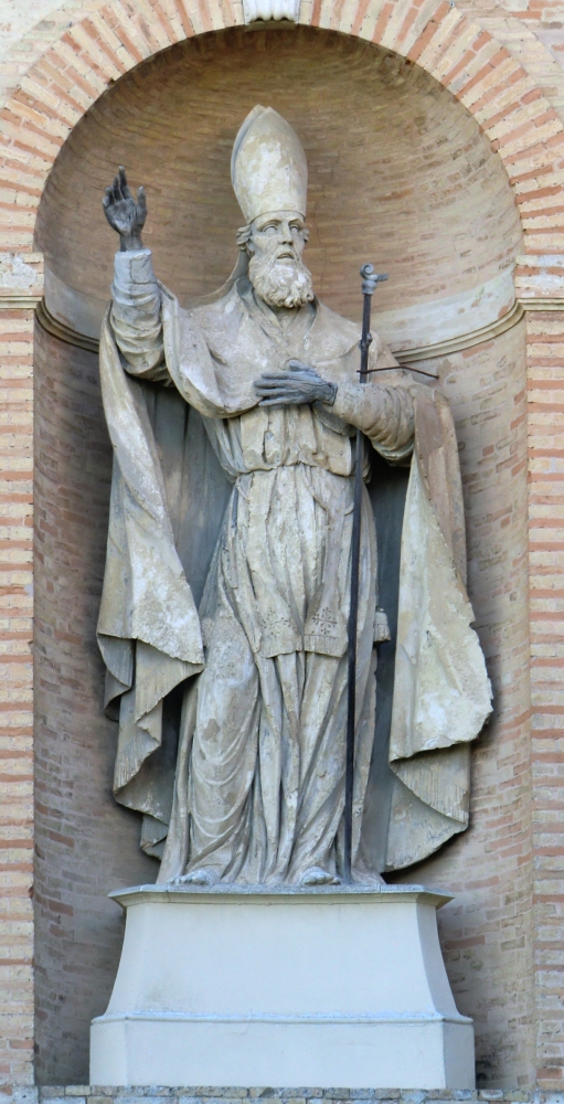1 ▲ Das Bild illustriert die Überlieferung, wonach die Diözese Fermo schon im 3. Jahrhundert gegründet worden sei. Mit dieser Überlieferung verbunden ist die Erinnerung an die zwei angeblichen Bischöfe und Märtyrer aus der Mitte des 3. Jahrhunderts, Alexander von Fermo und Philippus von Herakleia, die aber ohne jede historische Grundlage ist.