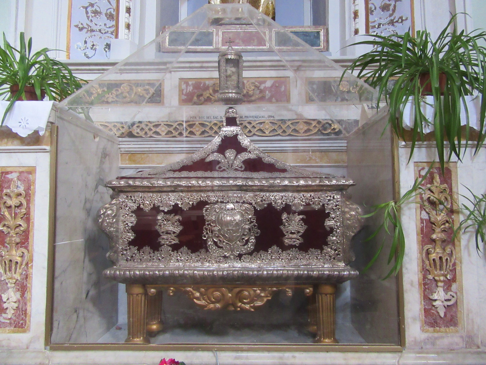 Der Soldat Transpadanus starb der Legende zufolge als Märtyrer in Rom. Er ist ein KatakombenheiligerKatakombenheilige sind als heilig verehrt Gebeine vor allem in den deutschsprachigen Gebieten nördlich der Alpen, die aus Katakomben in Rom stammen, von denen man oft nicht den Namen des Verstorbenen kennt und keinesfalls seine Lebensgeschichte. Besonders nach der Reformation, in der katholische Kirchen oft ihrer Reliquien beraubt worden waren, wurden als Ersatz in Rom die Gebeine Tausender erhoben; ihnen wurde ein Name zugeordnet und oft auch eine Geschichte, (nicht nur) bei bekanntem Namen oft die Geschichte eines tatsächlichen Heiligen., dessen Gebeine 1666 aus den Katakomben der Priscilla als Geschenk des Kardinals Sforza Pallavicini an den Ortsherrn Carlo Tomasi in die Kirche Maria Santissima del Rosario nach Palma di Montechiaro bei Agrigento übertragen wurden.
